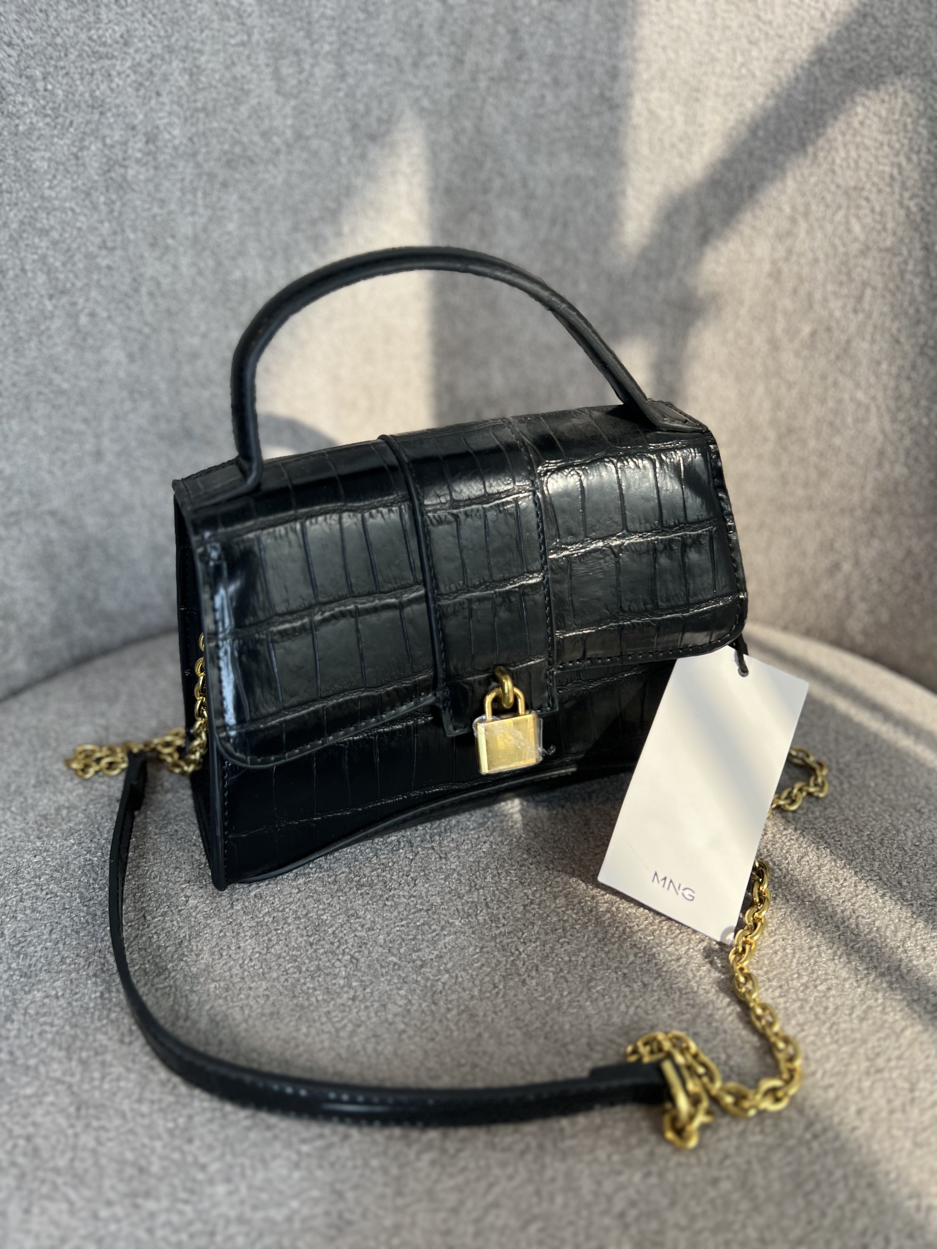 کیف مشکی مجلسی زنانه بند زنجیری برند منگو