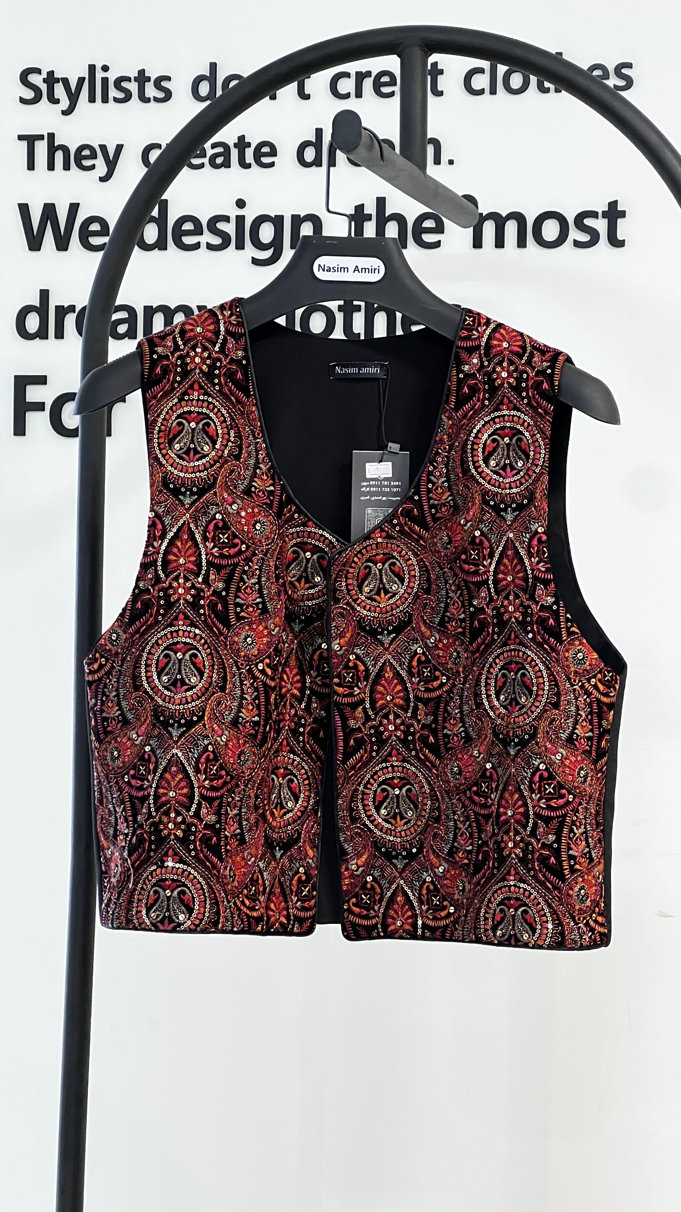 جلیقه سوزندوزی آستر کشی دخترانه قد ۵۰ سانت