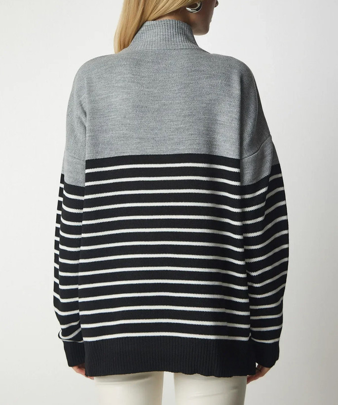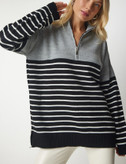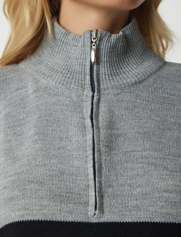 بافت زنانه ترک ، بافت بسیار با کیفیت و نرم که اصلا پوست رو اذیت نمیکنه ، این بافت تا نیمه زیپ داره و میتونین به صورت یقه ایستاده هم استفاده کنین