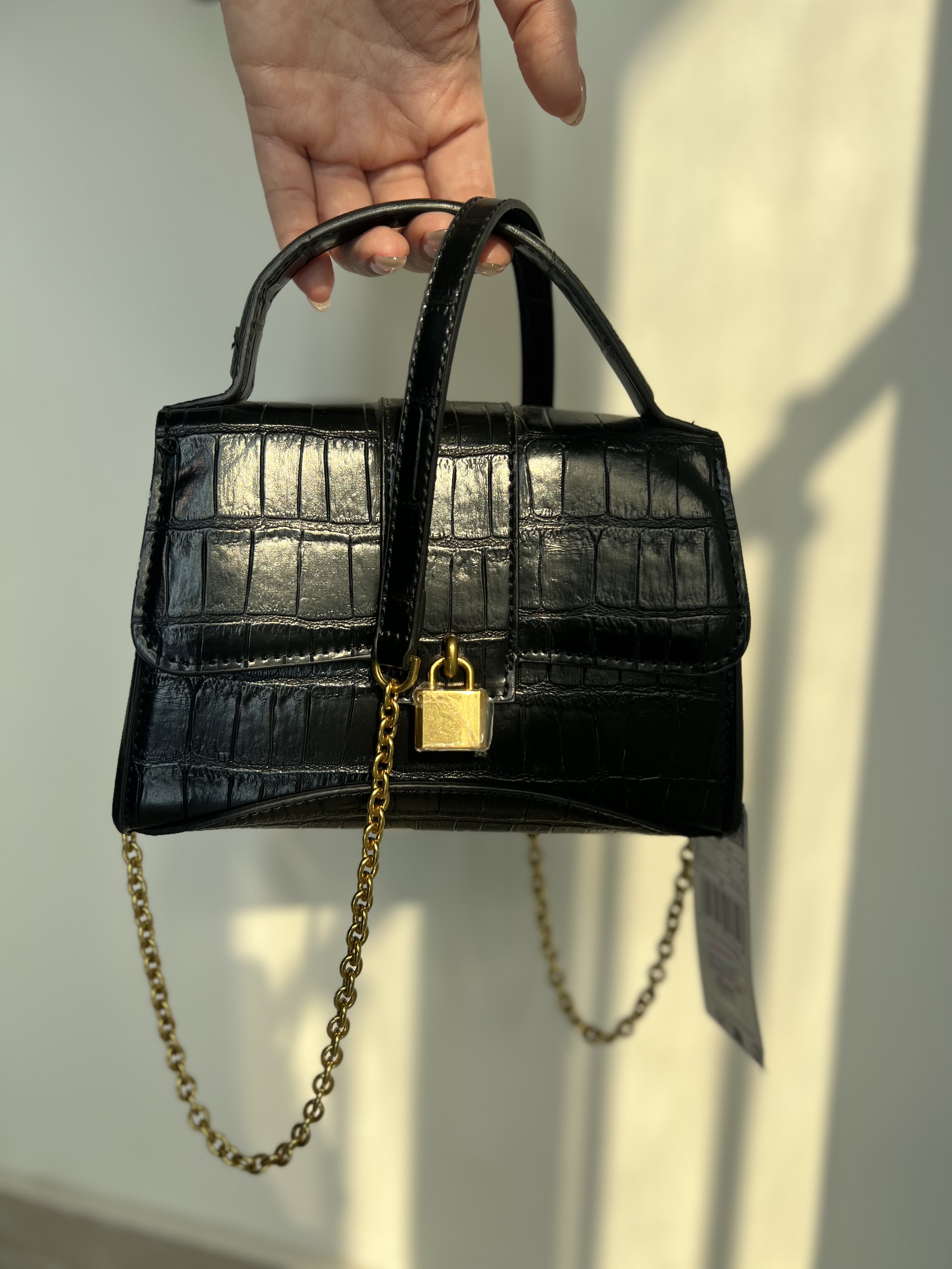 کیف مشکی مجلسی زنانه بند زنجیری برند منگو
